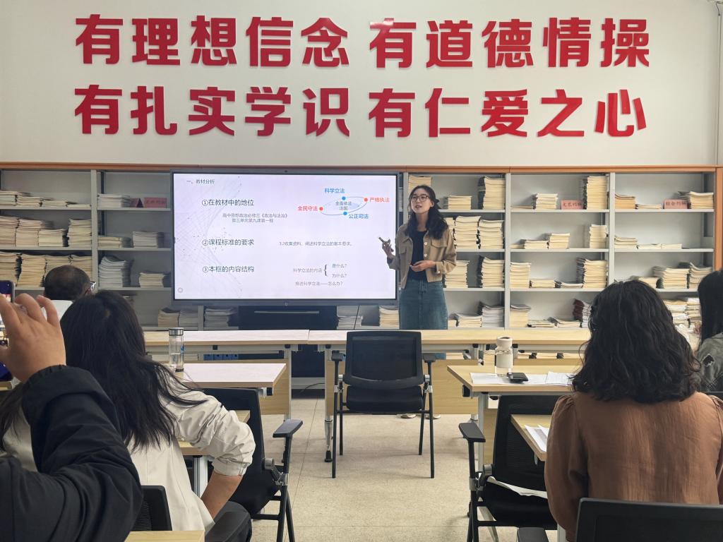 5月14日,学科教学(思政)研究生开展说课交流活动。他们结合高中思想政治课程特点,从教材分析、教学目标、教学方法及课堂实践等方面展开阐述,分享了《科学立法》《全面推进依法治国的总目标与原则》《全民守法》课题的教学设计思路。市二中思政教研组教师逐一进行点评,肯定了研究生们的教学基本功与思政元素融入技巧,同时围绕学情把握、互动设计、PPT制作、时间分配等提出改进建议。授课及说课活动结束后,思政教研组组织评课会,从教学目标达成、师生互动效果、思政元素渗透等维度进行点评,既肯定情境创设的亮点,也针对板书设计、问题链优化、驾驭课堂能力提升、注重课堂生成等方面提出改进建议。