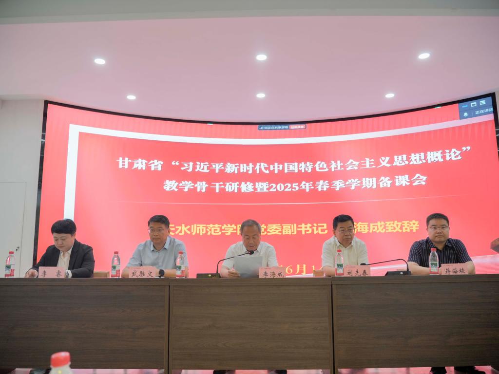 6月14日,由中共甘肃省委教育工作委员会、甘肃省教育厅指导,甘肃省“习近平新时代中国特色社会主义思想概论”分教学指导委员会、全国高校思政课“手拉手”集体备课中心(兰州大学)主办,全国高校思政课名师工作室(兰州大学)、天水师范学院bat365正版唯一官网、甘肃省思想政治理论课余明远名师工作室承办的甘肃省“习近平新时代中国特色社会主义思想概论”教学骨干研修暨2025年春季学期备课会在天水师范学院举办。来自中国人民大学、兰州大学、西北师范大学、兰州交通大学等高校的专家学者及骨干教师代表齐聚一堂,共同研讨新时代思政课教学创新与发展。