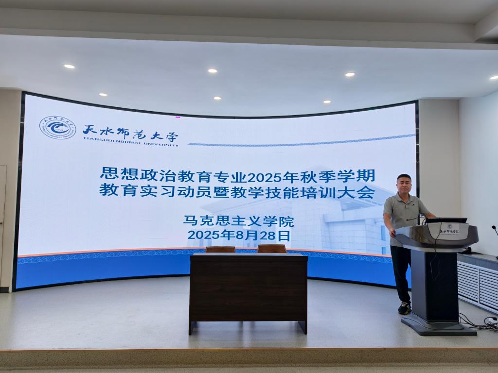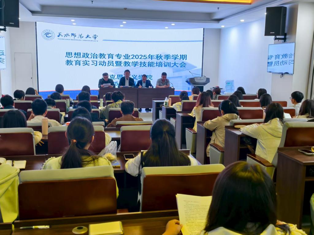 为扎实推动2025年秋季学期2022级思想政治教育专业教育实习工作有序高效开展,切实提升学生的教育教学实践能力。8月28日至29日,bat365正版唯一官网在红色讲堂隆重举行教育实习动员暨教学技能培训大会。学院党委书记陈俊亮、院长刘建军、党委副书记李海涛出席会议,2025年秋季学期全体实习生参加。会议由思政系主任吴亚辉主持。