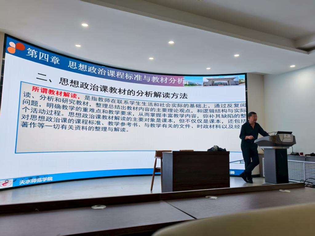 教学能力培训环节,侯智教授以“中小学思政课教学设计与实施”为主题,帮助学生掌握教学落地的关键方法;樊卫宾教授深入解读思想政治课程标准与教材分析,突出课标在教学中的引领作用;汪玉峰教授讲授“教育调查与研究”,指导学生结合教育实习开展调研、积累毕业论文素材;刘建军教授系统阐释“大中小学思政课一体化”设置理念,强化学段衔接意识,提升学生对思政课整体架构的认知。