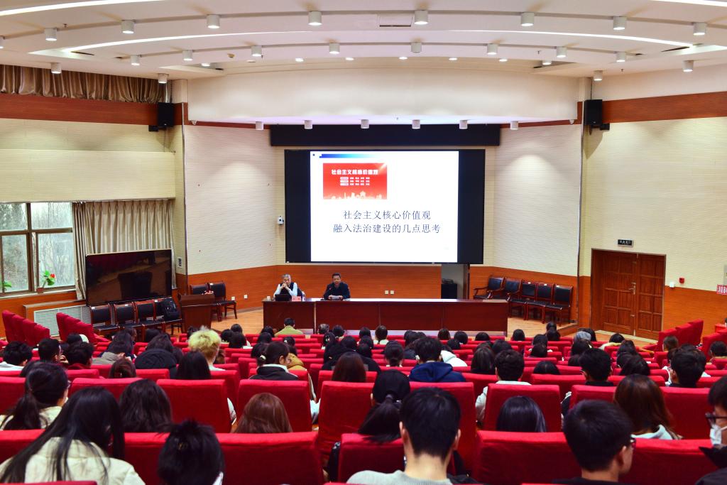 报告会中,刘锐首先对“法治”的深刻内涵进行了解读,围绕“如何理解社会主义核心价值观”“核心价值观融入法治建设的必要性”“核心价值观如何融入法治建设”3个方面进行了讲授,通过比较传统社会价值观、资本主义价值观和社会主义核心价值观,运用法学理论,结合典型案例,就需要融入的社会主义核心价值观的具体内容和融入的具体方式进行了深入分析和阐释。