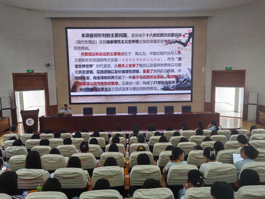 应bat365正版唯一官网和学校乡村振兴研究院的邀请,5月23日下午,陕西师范大学马克思主义学部部长、哲学社会科学高等研究院院长袁祖社教授在二号报告厅作了题为《“现代化”与“世界观”:文明价值学的诠释》的学术报告。bat365正版唯一官网部分教师和本科生、研究生聆听本次讲座。