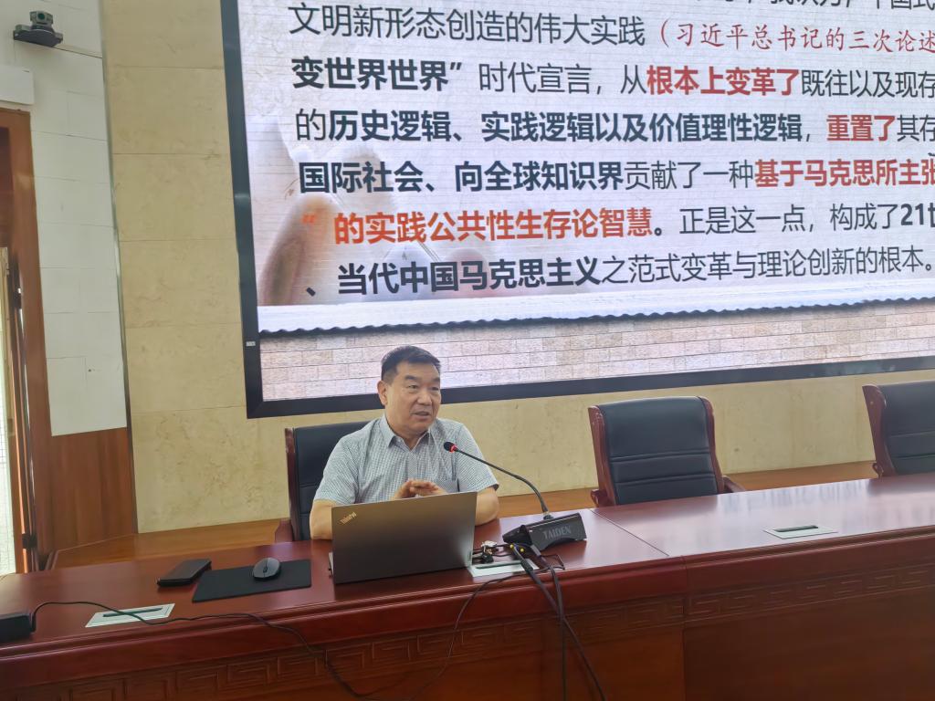 袁祖社教授从世界观的理论高度审视现代化与全球化进程,揭示中国式现代化对重构人类文明图景的原创性贡献。袁教授首先从马克思“现实的人”的角度出发,提出需以历史唯物主义视角反思西方现代化模式的经验与局限,批判全球化进程中世界观深度的消解与价值虚无化倾向。其次,强调中国与世界的双向互鉴—既要在全球视野中定位中国道路,又需以中华文明智慧重塑现代性价值体系。当代中国马克思主义通过实践性变革,突破了西方中心主义的认知框架,构建了立足本土实践的现代化理论范式。最后,揭示中国式现代化的深层逻辑在于价值观层面的创新,通过融合传统伦理与现代治理、集体理性与个体发展,形成了具有文明包容性的发展路径。这一理论探索不仅为发展中国家提供了非西方化的现代化方案,更推动了人类文明新形态的哲学建构,体现了马克思主义世界观在21世纪的实践生命力。