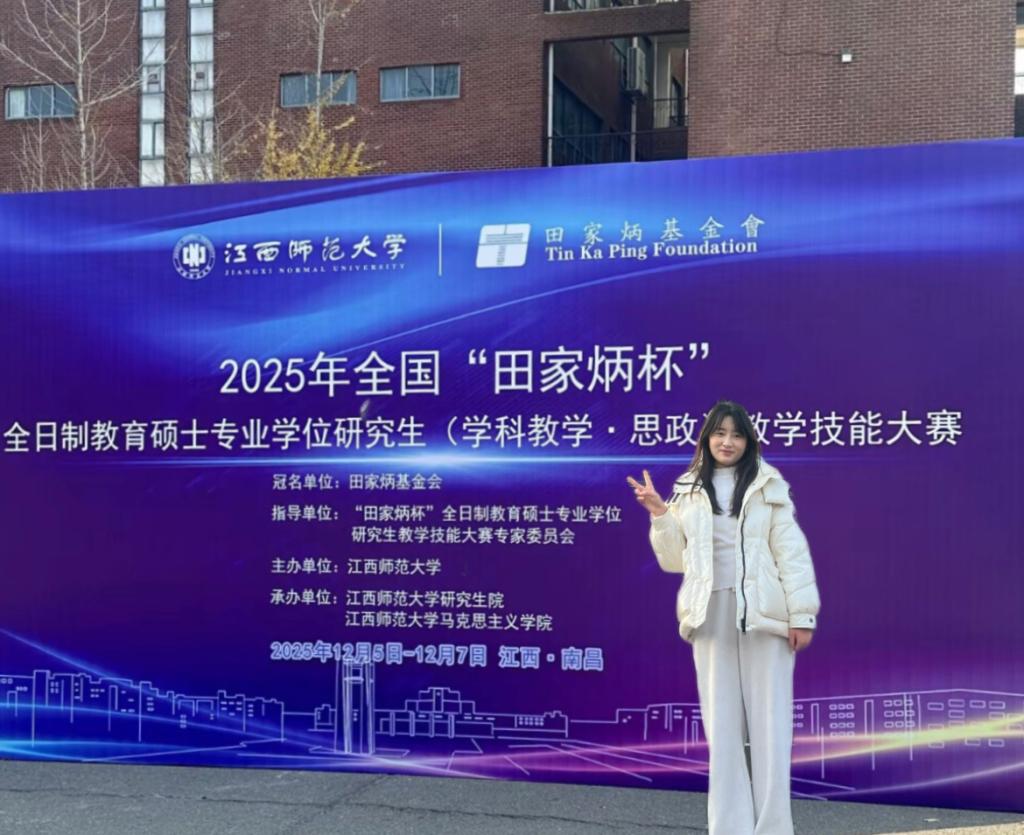 12月5-7日,2025年全国“田家炳杯”全日制教育硕士专业学位研究生(学科教学·思政)教学技能大赛决赛在江西师范大学圆满落幕。bat3652023级学科教学(思政)专业研究生范雪凡凭借扎实的专业功底和出色的教学展示,荣获“优秀教学设计奖”。