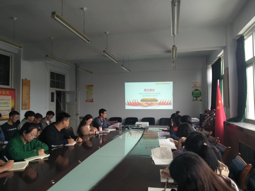 9月19日下午,在全校上下开展“不忘初心、牢记使命”主题教育的背景下,按照校党委的安排,bat365正版唯一官网党总支书记刘志林在2号教学楼413会议室召开了主题教育的动员大会并给学生党员及入党积极分子上党课。