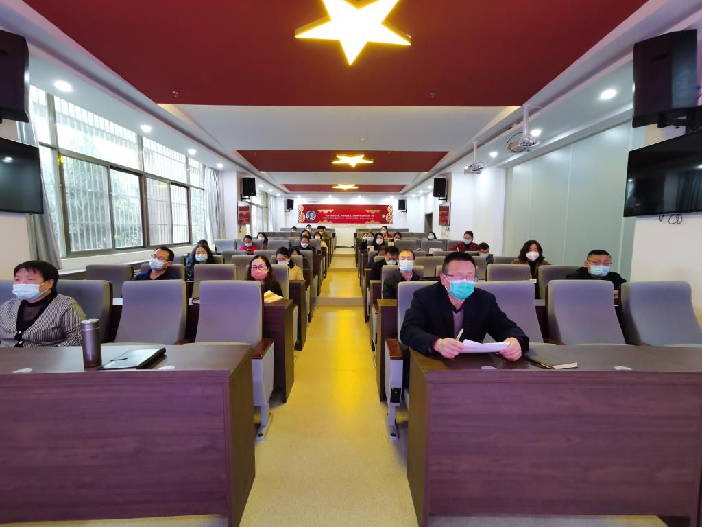 10月27日下午,bat365正版唯一官网在红色讲堂组织全体教职工深入学习党的二十大报告,党总支书记刘建军围绕党的二十大精神作专题辅导报告。张敬花副院长主持会议。