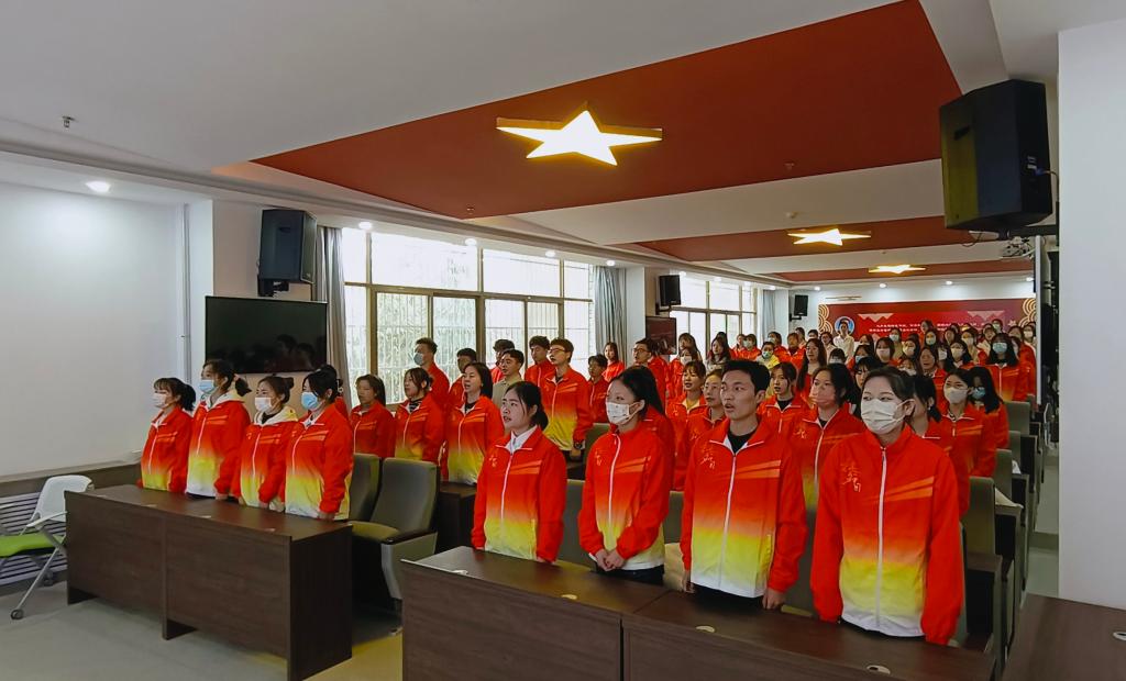 为深入学习宣传贯彻党的二十大精神,聚焦为党育人,加强对团员的政治训练和政治锻造,迎接新学期的开始,bat365正版唯一官网于3月2日在红色文化教育体验馆红色讲堂举办了“开学第一课”的专题教育活动。参加本次活动的有学院全体领导、部分教师以及2022级全体学生。