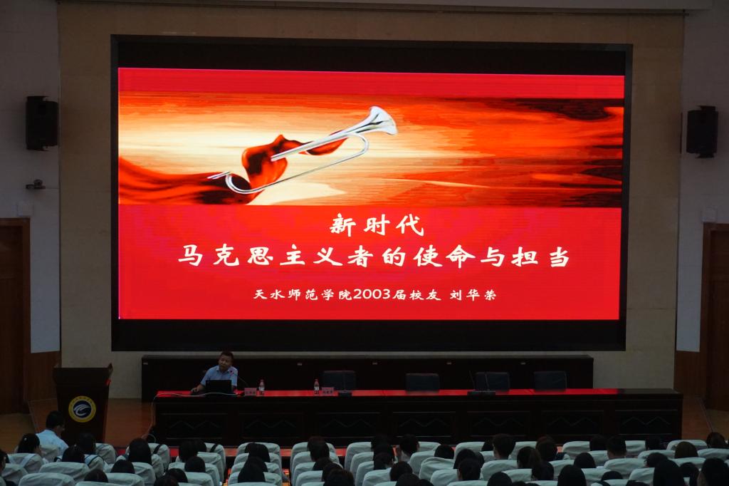 刘华荣博士围绕“新时代马克思主义者的使命与担当”,从“何为马克思主义者、已经被证明了的马克思主义、十九大对天下大势的判断和新时代马克思主义者的可能性”四个方面,从马克思主义者成长的视角,结合思政专业发展和马克思主义理论学科建设,提出新时代成长为马克思主义者的可能性是由胸怀决定高度、本领决定进度、方向决定程度、素养决定广度、国魂决定国度,中华民族伟大复兴的责任在当代的青年人身上,作为思想政治教育专业的学生,要加强专业学习,努力成为马克思主义者,投身于新时代中国特色社会主义建功立业。刘华荣博士知识渊博,讲座情真意切。他提及当年在母校求学的日子,对母校的老师无比感谢,他鼓励思政专业的同学脚踏实地,认真学习,研读马克思主义经典著作。最后他为母校迎来60周年校庆送上了最真切的祝福,愿母校的明天越来越辉煌!