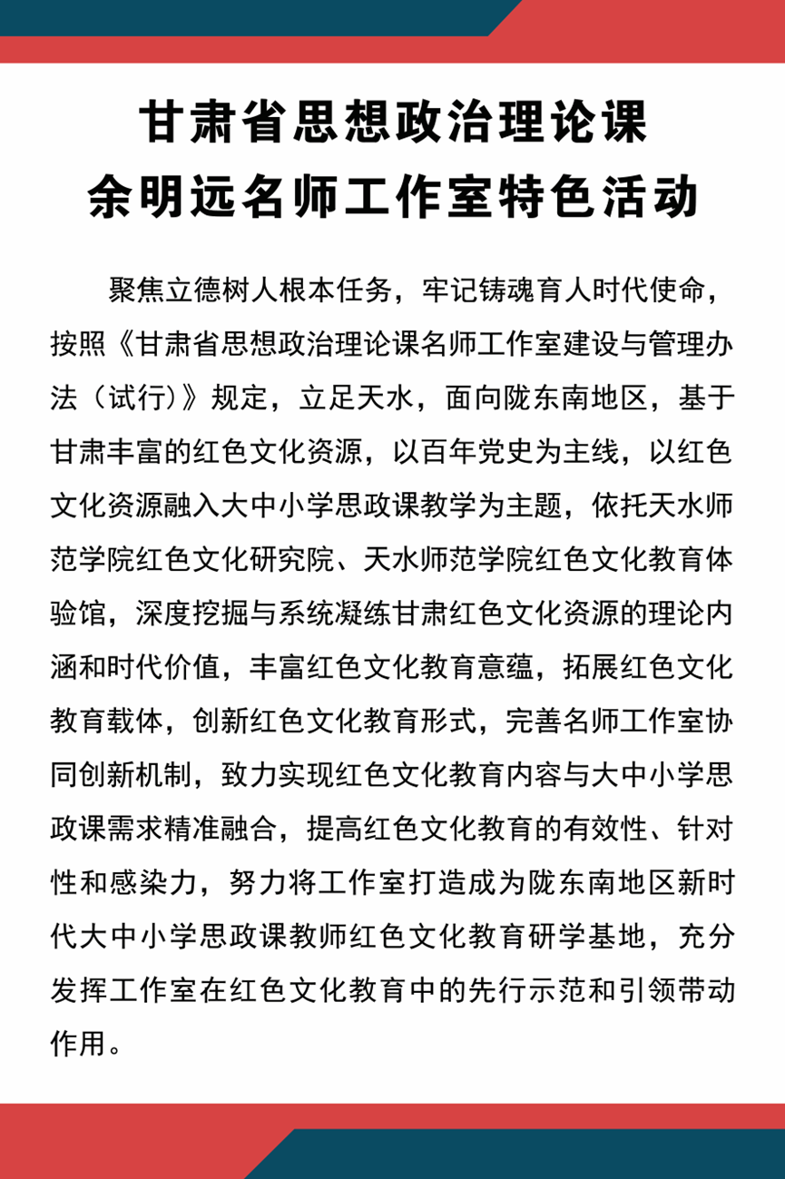 下一条:甘肃省思想政治理论课余明远名师工作室获批授牌照片
