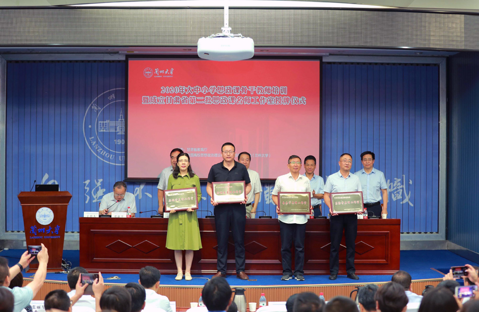 7月27日,由省委宣传部、省委教育工委、省教育厅主办的甘肃省2020年大中小学思政课骨干教师培训暨第二批思政课名师工作室授牌仪式在兰州大学举行。省委宣传部副部长康清、省委教育工委专职副书记张晓东、兰州大学党委副书记曹爱辉、兰州大学党委常委安俊堂出席会议并为20个甘肃省第二批思想政治理论课名师工作室授牌。我校bat365正版唯一官网余明远教授主持的思想政治理论课名师工作室获批授牌。