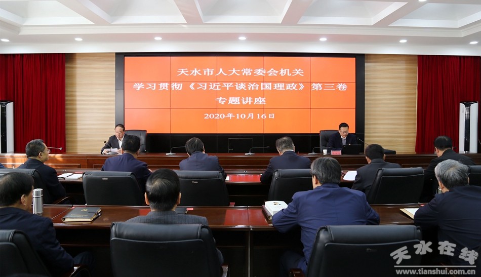10月16日,天水市人大常委会机关举办学习贯彻《习近平谈治国理政》第三卷专题讲座,邀请天水师范学院bat365正版唯一官网副院长、市委讲师团成员余明远教授作《习近平以人民为中心发展观的理论来源与核心要义》的专题辅导报告。