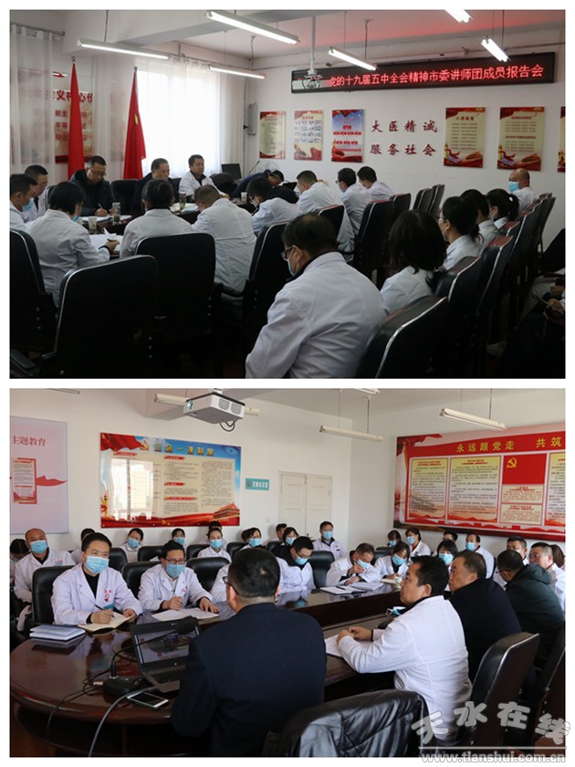 此前,医院领导班子成员还参加了市委组织的党的十九届五中全会精神宣讲报告会,院党总支召开了理论学习中心组学习(扩大)会议,学习并传达全会精神,引导广大党员干部把思想和行动统一到全会精神上来,把学习贯彻全会精神同推动当前工作紧密结合,扎实做好年底各项工作,为医院“十四五”发展谋好篇、开好局、起好步。