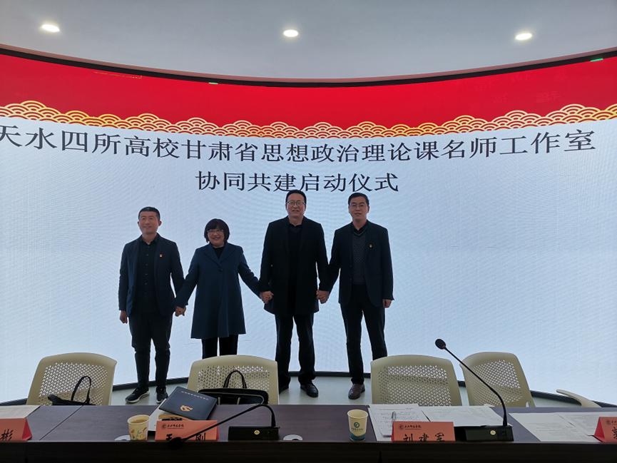 为进一步密切合作交流,实现优势互补,促进共同发展深入学习贯彻落实习近平新时代中国特色社会主义思想和党的二十大精神,4月8日,天水师范学院省级思政课余明远名师工作室甘肃林业职业技术学院省级思政课郭三龙名师工作室、甘肃工业职业技术学院省级思政课黄彬名师工作室甘肃工业职业技术学院省级思政课史维波名师工作室等四个驻市高校的4家省级思政课名师工作室举行同共建活动启动仪式,并进行宣讲示范交流活动。