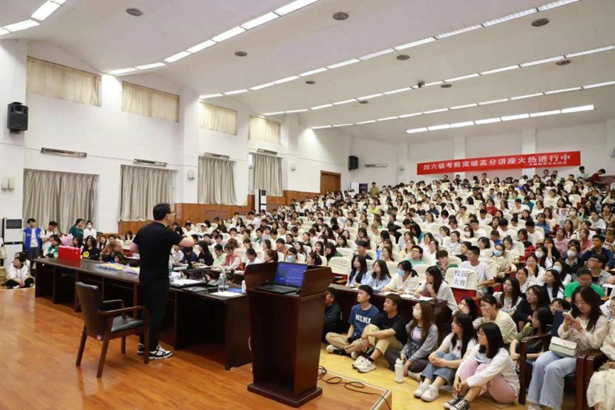 bat365正版唯一官网约300名学生聆听了讲座,并与主讲者互动交流。讲座融学习指导与励志教育为一体,科学地指导学生备考大学英语四六级考试,激发学生自信自立,树立更高远的发展目标。