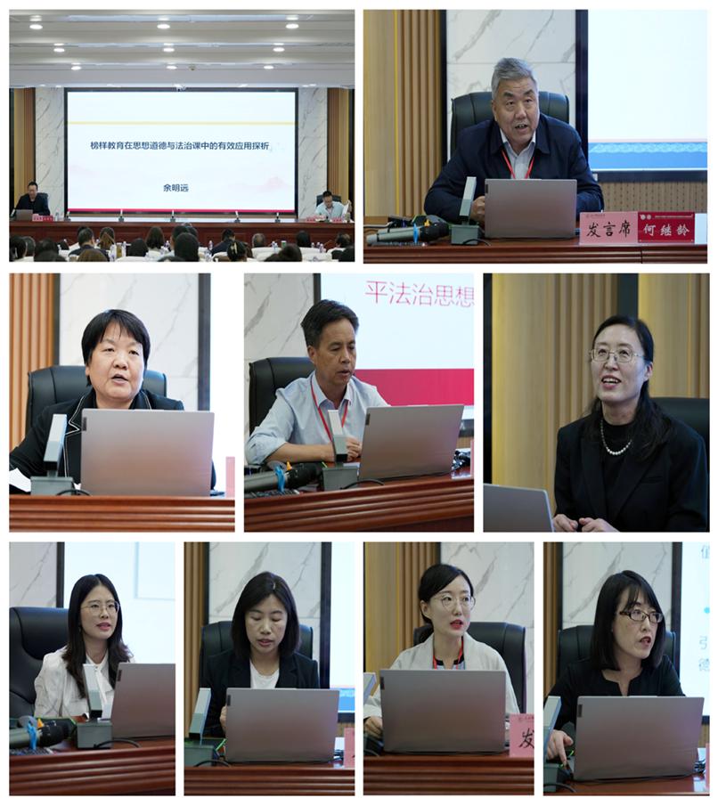 会议研讨交流和教学展示阶段分别由全国思政课名师工作室(兰州理工大学)主持人、甘肃省“思想道德与法治”分教指委副主任兼秘书长、兰州理工大学bat365正版唯一官网院长饶旭鹏教授,甘肃省思政课余明远名师工作室主持人、天水师范学院bat365正版唯一官网副院长余明远教授主持。西北师范大学何继龄教授、甘肃农业职业技术学院副校长马万锋副教授、兰州理工大学德法教学部副主任高瑛副教授、兰州城市学院王子龙教授、天水师范学院余明远教授、甘肃政法大学乔娟副教授、甘肃财贸职业学院寇明英副教授、兰州石化职业技术大学钱镜伊副教授、西北师范大学耿春晓讲师、甘肃农业大学陆茸讲师、兰州信息科技学院杨燕讲师分别进行了学术交流。