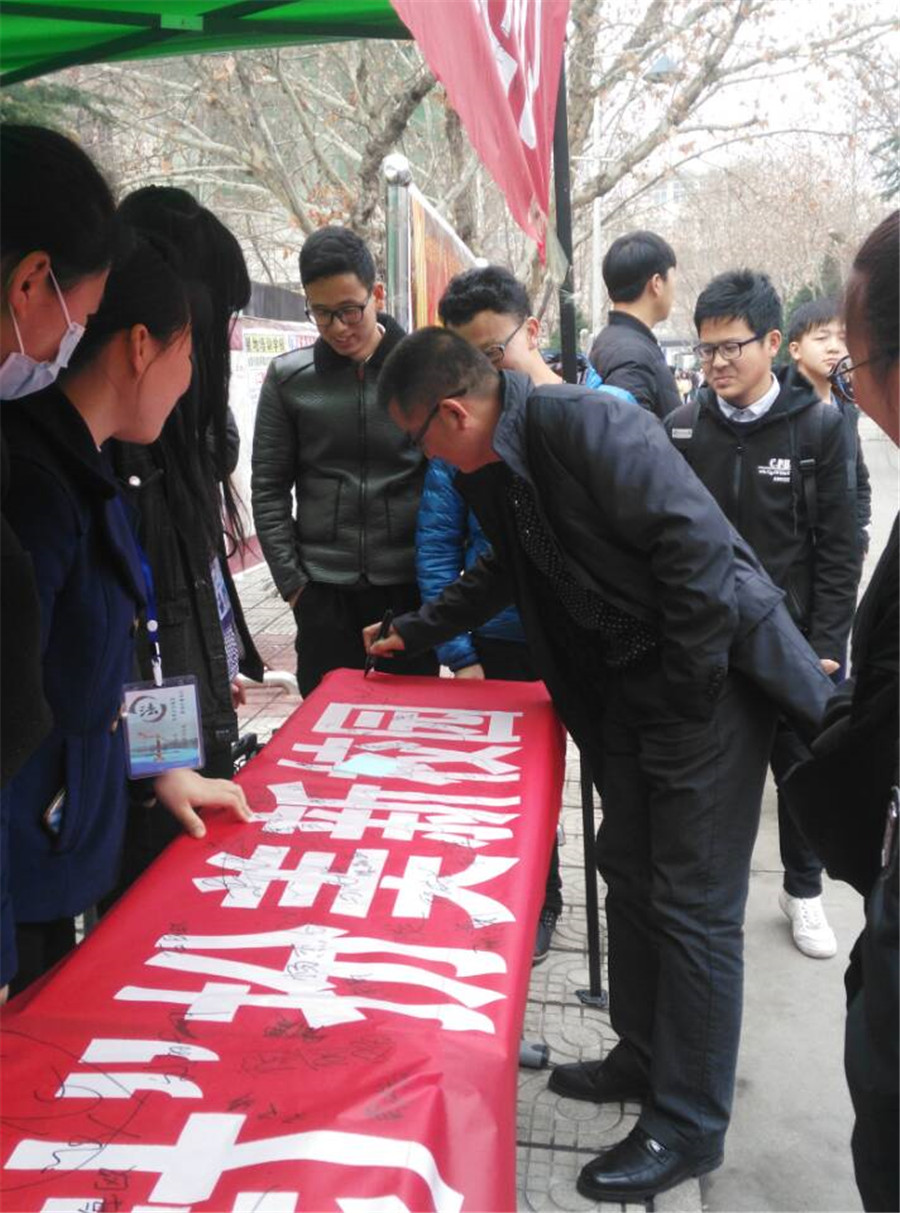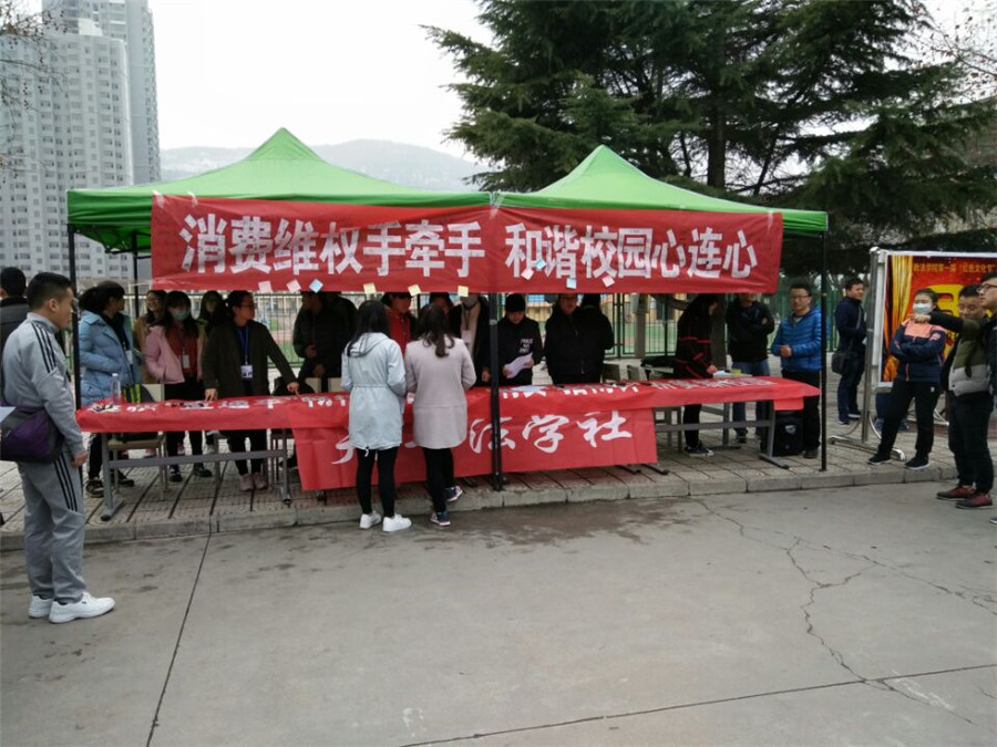 每年的3·15都是广大消费者的“节日”,为了扩大对消费者权益保护的宣传,更好地开展保护消费者权益工作,政法学院于3月15日在东操场门口举行了消费者权益日宣传活动。活动通过横幅、展板、现场签名、散发宣传单、现场法律咨询等形式进行,活动开展效果良好。活动中,广大学生能够积极的参与到活动中,在横幅上留下自己的名字,气氛也越来越热烈。分管学生工作的赵世明副院长也开展了宣传,并签下了名字。