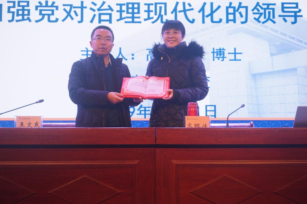 会上,王文东副校长代表陇东南红色文化研究院向高璐佳颁发了陇东南红色文化研究院兼职研究员聘书。