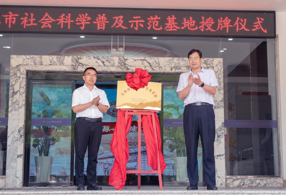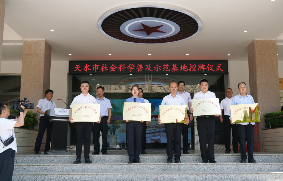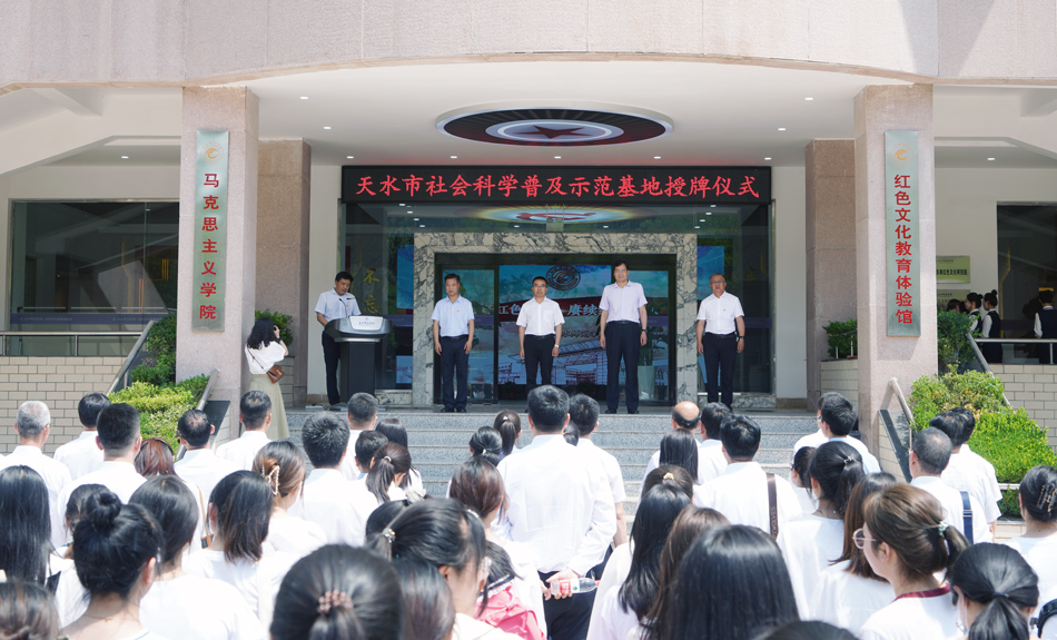 7月1日,天水市第三批社会科学普及示范基地揭牌授牌仪式在学校红色文化教育体验馆举行。市委常委、宣传部部长王文东,天水师范学院党委书记李正元共同为基地揭牌。市委宣传部副部长阎小鹏主持揭牌仪式,我校bat365正版唯一官网党总支书记、红色文化教育体验馆馆长刘建军作发言,60余名师生代表参加揭牌仪式。