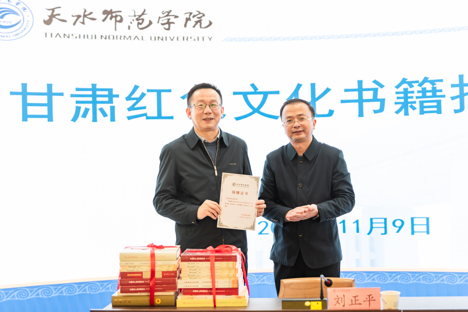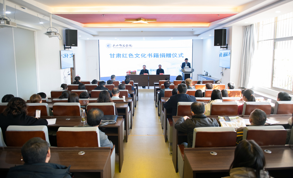 为认真贯彻落实习近平总书记关于“把红色资源利用好、把红色传统发扬好、把红色基因传承好”的指示精神,11月9日,甘肃省委党史研究室为我校捐赠甘肃红色文化书籍暨红色文化讲堂开讲仪式在红色文化教育体验馆举行。