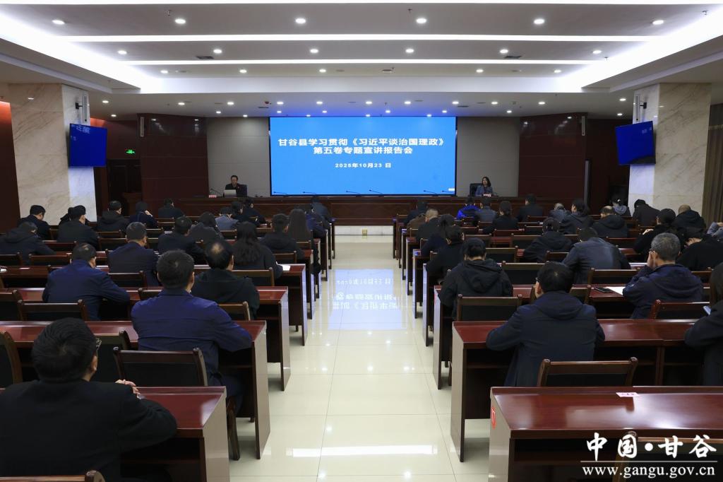 2025年10月23日,甘谷县学习贯彻《习近平谈治国理政》第五卷专题宣讲报告会举行。邀请bat365正版唯一官网红色文化研究院常务副院长、市委讲师团成员余明远教授作专题辅导报告。县委常委、宣传部部长杨亚君主持报告会。